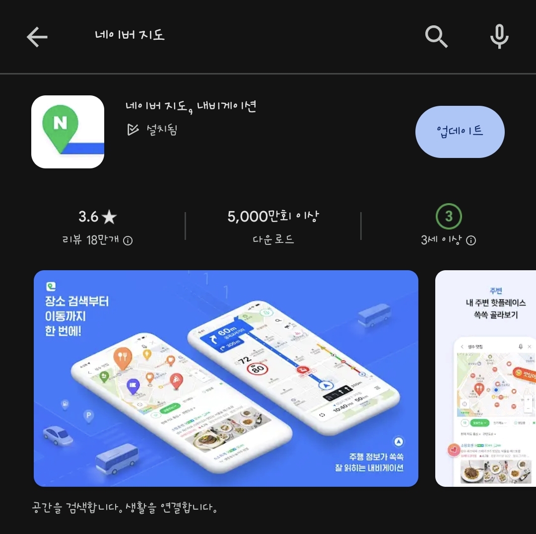 네이버지도 앱을 최신 버전으로 업데이트를 하거나 새로 설치를 하면 아래 화면처럼 나옵니다.